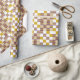 Elegantes afrikanisches Kente-Muster in Gold, lila auf Weiß. Dieses einfache gestreifte Design hat ein reichhaltiges königliches Gefühl und ist perfekt für jeden und jeden Anlass! Sehen Sie sich das passende Papiertaschentuch, das Band und die Geschenktaschen an. Muster K32