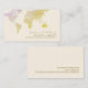 Moderne und berufliche cremefarbene Visitenkarte mit Namen (Manuskript-Schriftart-Stil) und individueller reisebezogener Beruf (Reise-Agent) und das Bild einer gelblichen Weltkarte.. und Vorlagen für Adresse, E-Mail und Telefon auf der Rückseite..