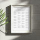 Dieses Hochzeitsstühle-Poster wurde mit Bequemlichkeit und Erschwinglichkeit gestaltet und enthält die Namen Ihrer geschätzten Gäste, die in alphabetischer Reihenfolge sorgsam angeordnet sind. Dies garantiert ein reibungsloses und müheloses Erlebnis, das es Ihren Gästen ermöglicht, ohne Verwirrung und ohne langwierige Listen ihre Sitzplätze schnell zu finden. Dieses Sitzplakat vereinfacht den Prozess und macht es jedem leicht, seinen Platz mit einem Blick zu finden. Stellen Sie sicher, dass Ihre Hochzeitssitze stressfrei, visuell ansprechend und preisgünstig sind, indem Sie sich für dieses individuell gestaltbare Plakatposter entscheiden. Es ist die ideale Lösung für ein leichtes und genussvolles Erlebnis für Sie und Ihre Gäste, ohne Ihr Budget zu belasten.