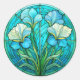 Eleganter floraler Jugendstil-inspirierter Rundaufkleber mit farbigen Glaseisen in Blues, Teppichen und Pastellgelb.