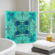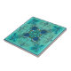Eine künstlerische Kachel für Bad oder Küche mit einem fantasievollen geometrischen Design in aquamarinen und minzgrünen Farben.