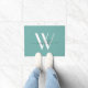 Elegantes Aquamarines Monogramm-Namensskript Fußmatte