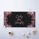 Modernes, dunkles Schwarz-Design mit Kalligraphie-Schrift und durchsichtig rosa Aquarell-Blume.