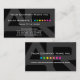 Elegante Visitenkarten in elegantem Schwarzem und im Grau mit einer Reihe der vibrierend farbigen Tupfen. Kundengerechtes Monogramm im Hintergrund.