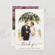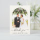 Elegante helle cremefarbene Hochzeit Dankeschön-Karte mit Ihrem Hochzeitstag Foto in einem Bogen-Rahmen, "danke" in einem schicken Skript mit Swashes und Ihre Vornamen und Hochzeitsdatum mit einem Herz verbunden. Fügen Sie auf der Rückseite ein zusätzliches Foto hinzu, personalisieren Sie Ihre Dankeschön-Nachricht und fügen Sie Ihre Namen in ein signaturartiges Skript ein.
