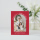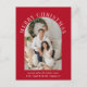 Elegante rote Urlaubspostkarte mit Ihrem Foto in einem Bogen-Rahmen, "Frohe Weihnachten" in klassisch weißer Serifentypografie und Ihrem Namen und einem saisonalen Gruß in schlichter, moderner Weißtypografie. Fügen Sie ein zusätzliches Foto auf der Rückseite und Ihre personalisierte Begrüßung zu Freunden und Familie.