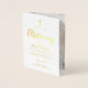 Feiern Sie mit unserer eleganten Baby Christening Custom Foto Foil Card die fröhliche und gesegnete Taufveranstaltung Ihres Babys. Wir verstehen die Bedeutung dieses Tages und streben danach, ein Design zu schaffen, das seine Bedeutung schön erfasst. Auf der Vorderseite der Karte befindet sich eine goldgelbe Metallfolie, die eine Touch von Eleganz und Eleganz verleiht. Mit der Folie werden die Schlüsseldetails der Taufeinladung hervorgehoben und ein atemberaubender visueller Effekt erzeugt. Die elegante, moderne Schrifttyp ergänzt die Folie und verbessert so das Gesamtdesign. Zusätzlich ist ein goldenes Kreuz enthalten, das die heilige Natur des Ereignisses symbolisiert. Personalisieren Sie die Karte, indem Sie ein schönes Foto Ihres Babys auf der Innenseite hinzufügen. So können Sie das bezaubernde Gesicht Ihres Kleinen zeigen und einen wirklich personalisierten Sake schaffen. Das gefaltete Kartenformat fügt ein Überraschungs- und Antizipationselement hinzu, wenn der Empfänger es öffnet, um das Foto zu enthüllen. Unsere Elegant Baby Christening Custom Foto Foil Card ist so konzipiert, dass Sie diesen besonderen Tag begehen und eine bleibende Erinnerung schaffen können. Die Kombination aus Goldfolie, eleganter Typografie und personalisiertem Foto macht es zu einem wahrhaft einzigartigen und gepflegten Sake für Sie und Ihre Lieben.
