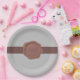 Das moderne und elegante Design besticht durch eine lila Band und ein "Wachs Siegel"-Center, das mit einigen Initialen auf hellgrauem Hintergrund personalisiert werden kann