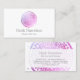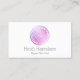 Ein handbemalter Kreis in rosa und lila Farbtönen mit weißer Mandalaätzung wird zu einem einzigartigen Logo auf diesen modernen Visitenkarten. Dieses Design wurde für Schönheitssalons, Hautpflegemaschinen, Boutiquen, Massagetherapeuten und vieles mehr entworfen. Diese zweiseitige Visitenkarte bietet Platz auf der Rückseite für Ihre Kontaktdaten. Kunst und Design © 1201AM Design Studio | www.1201am.com