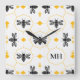 Elegantes Bienenmuster Schwarz Monogram Gelb Moderne Square Wall Uhr.