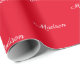 Benutzerdefinierter Skriptname Text rot und weiß Geburtstagsgeschenk Wrapping Paper White Text (weißer Text mit rotem Hintergrund)