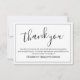 Einfach und stilvoll, ist dieses elegante Blumendesign der perfekte Weg, um Ihren Freunden und der Familie, die ein Familienmitglied geehrt haben, das vor Kurzem das Programm bestanden hat, Ihre größte Dankbarkeit zu vermitteln.Das Design verfügt über einen handgeschriebenen Skripttext "danke" sowie zwei zusätzliche Textbereiche, die individuell angepasst werden können, um Ihre Dankbarkeit und den Namen des kürzlich abgestorbenen Individuums zu zeigen. Der gesamte Text ist schwarz. Auf der Rückseite befindet sich ein passender schwarzer Hintergrund mit weißem, handgeschriebenem Skript "Danke".