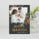 Teilen Sie Ihre Erinnerungen mit Familie und Freunden mit dieser eleganten Weihnachtskarte im Grünen. Es enthält die Worte "Happy Holidays" in Imitaten Gold mit Ihrem Foto gerahmt mit Heiligenbäumen und Grün. Personalisieren Sie Ihre Nachricht und Ihr Lieblings-Foto.