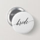 Dieses elegante Brautparty mit schwarzer Kalligrafie ist perfekt für einen einfachen Polterabend. Das neutrale Design verfügt über einen minimalistischen Knopf, der mit romantischer und skurriler Typografie dekoriert ist.