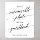 Dieses elegante, schwarze Kalligrafie-denkwürdige Foto-Zeichen ist perfekt für eine einfache Hochzeit. Das neutrale Design besticht durch ein minimalistisches Poster, das mit romantischer und skurriler Typografie dekoriert ist.