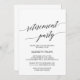 Diese elegante, schwarze Kalligraphie-Ruhestandskarte eignet sich perfekt für ein einfaches Party Einladung-Event. Das neutrale Design besticht durch eine minimalistische Karte, die mit romantischer und skurriler Typografie dekoriert ist.
