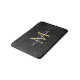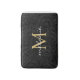 Elegantes Schwarzes Vintages florales botanisches Muster mit einem goldenen Monogramm und weißem Skriptnamen.