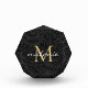 Elegantes Black Floral Gold Script Monogram Fotoblock