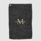 Elegantes Black Floral Gold Script Monogram Golfhandtuch