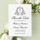 Elegantes Black Floral Wappen Monogram Foto Hochze Save The Date