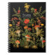 Notebook Journal in Elegant schwarzen Blumen botanischen Boden mit Grün und Pilzen alle als Collage auf einem schwarzen Hintergrund angeordnet. Inspiriert durch einen Wald. Personalisieren Sie Ihren Namen.