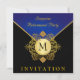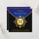 Elegantes Black Gold Blue Monogramm Einladung 2