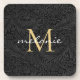 Elegantes Black Gold Floral Script Monogram Getränkeuntersetzer