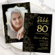 Elegantes Black Gold Foto Überraschung 80. Geburts Einladung