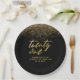 Geburtstagsparty Teller aus Schwarz und Gold. Atemberaubend vergoldeter Glitzer und goldener Geburtstagstext auf schwarzem Hintergrund. Einfach zu anpassen und auf jedes gewünschte Alter zu ändern.
