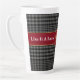 Mit dieser anpassbaren Latte-Tasse, die ein kariertes klassisches Graumuster, einen roten Rahmen, ein Goldemblem und einen anpassbaren Text wie "As It a Latte" aufweist, können Sie sich stilvoll ausdrücken. Dieses Design ist elegant und männlich, und es wird ein großes Geschenk für Väter, Söhne, Freunde, Kaffee oder Tee Liebhaber. Fügen Sie Ihr eigenes Logo für ein einzigartiges Firmengeschenk oder ein Marketing hinzu oder behielt das Symbol so, wie es ist. Ändern Sie den Text auf beiden Seiten der Tasse nach Ihren Bedürfnissen.