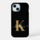 Elegantes Black-Gold-Script-Monogramm iPhone 15 Hülle