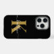 Dieses einfache, elegante schwarze iPhone 15 Pro Case mit Ihrem Vornamen in einem trendigen Script-Schriftart in Weiß tippt über Ihre erste erste in einem modernen Mütze Schriftart in Gold würde fabelhaft auf Ihrem Handy aussehen und behalte es vor Brüchen geschützt. Es ist stilvoll und trendig und dennoch sehr klassisch.
