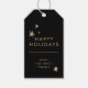 Elegante moderne schwarze Feiertagsmarke, doppelseitig mit goldenen Sternen, schwarzen Sternen und modernem Text. Auf der Rückseite befindet sich ein umgekehrter Speicherplatz, auf dem der Geber den Namen TO: schreiben kann.