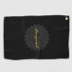 T-Shirt im Stil mit diesem eleganten schwarzen Handtuch, personalisiert mit Ihrem Namen und Initial. Aus weichem, saugfähigem Material mit einem bequemen Keilrahmen für eine einfache Befestigung, funktionell und raffiniert. Dieses kleine Handtuch ist ein perfektes Geschenk für Golfliebhaber. Es verleiht jedem Golfer eine ganz besondere Note.