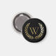 Dieser elegante personalisierte Magnet zeichnet sich durch ein goldenes Monogramm aus, gerahmt mit einem goldenen Lorbeerkranz auf einem einfachen schwarzen Hintergrund. Entworfen von Susan Coffey.