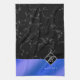 Elegantes Black Marble & Royal Blue Foil Monogramm Geschirrtuch