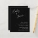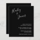 Moderne Budget Hochzeitseinladung mit einem einfachen Design mit Ihren Namen in einer eleganten, handgeschriebenen Schrift am oberen links und Ihre Veranstaltungsdetails in der rechten Ausrichtung unten rechts. Alle Designelemente sind auf schwarzem Hintergrund weiß und können im Designbearbeitungstool geändert werden. Die schicke Handschrift fügt diesem minimalistischen Design eine romantische Touch hinzu.