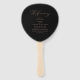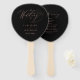 Diese eleganten Hochzeitshandventilatoren verfügen über ein goldfarbenes Imitat-Rose-Design auf schwarzem Hintergrund. Personalisieren Sie mit den Braut- und Bräutigamen und dem Hochzeitstag auf der Vorderseite und den Details Ihrer Zeremonie auf der Rückseite. Entworfen von Susan Coffey.