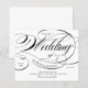 Schöne und dennoch erschwingliche Hochzeitseinladung mit extravaganter Skriptkalligraphie und gebogenem Text. Die Wörter "Hochzeit von" sind ein Bild, das in flacher Tinte gedruckt ist und nicht bearbeitet werden kann. Alle anderen Texte können vollständig bearbeitet werden. Klicken Sie auf "Weiter anpassen", um die Hintergrundfarbe, die Größe des Schriftartes, die Krümmung oder den Stil zu ändern.