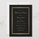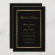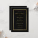 Mit dieser eleganten, schwarzen Einladung laden wir Sie zu einer stilvollen Hochzeitsfeier ein. Im klassischen Design finden Sie Imitats mit Gold-Script und all Ihren Dinner-Details, die mit einem glänzenden Imitat-Goldrahmen auf einem einfachen schwarzen Hintergrund umrahmt sind. Herzlichen Glückwunsch für Ihre Hochzeit und Ehe! Entworfen von Susan Coffey.