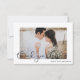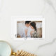 Unvergessliche Hochzeitskarte mit einer zarten schwarzen Schrift, elegant über Ihrem Foto ausgestellt. Personalisieren Sie sich einfach mit Ihren Namen. Auf der Rückseite befindet sich ein vorgeschriebener Text, der geändert werden soll, um über Ihren besonderen Tag nachzudenken, oder gelöscht wird, um eine persönliche Dankesnachricht zu schreiben, sobald Ihre Karten ankommen. Diese Hochzeitsdanken sind die perfekte Möglichkeit, Ihre Hochzeitsfeiern zu beenden und gemeinsam Ihr neues Leben zu beginnen.