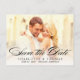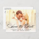 Elegantes Black Script Wedding Foto Save the Date Ankündigungspostkarte