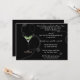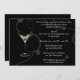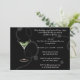 Elegante Party Einladung mit schwarzem Hintergrund, ein Glas Martini, weiche weiße Wirbel. Passen Sie sich mit Ihrem persönlichen Gruß, Familiennamen und individuellen Namen an.