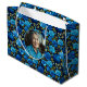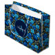 Elegantes Blau-Rose Blumenmuster Monogrammatisches Große Geschenktüte