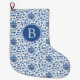 Elegantes Blau-Weiß-Chinesisches Vase-Monogramm Großer Weihnachtsstrumpf