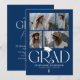 Elegantes Blau-Weiß-Foto-Graduationsparty mit 4 Fo Einladung