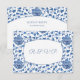 UAwg-Antwortkarte mit einem Hintergrund eines handgemalten blauen und weißen Chinoiserie-Musters.