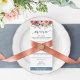 Freuen Sie sich auf diese exquisite Menükarte. Einzigartiges Design mit vorn bemalten Aquarellbändern mit Blume und Blattwerk in rot, staubige Rose, Elfenbein, Pfirsich, trübes Schieferblau, Grau und Salbei. Auf der Rückseite ein exquisites Blumenstrauß mit Zentralbereich mit Ihrem Namen oder kurzer Nachricht und Hintergrund über einen eleganten Schiefertafel/trüben staubigen blauen Schatten. Handgeschriebene Typografie-Details. Teil unserer Hochzeitskollektion "Ethereal in Dusty Blue".