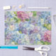 Dieses elegante Blumenpapier mit blauen und lavendelfarbenen Hydrangea in voller Blüte, die das Gewebepapier vollständig bedeckt. Ideal für Hochzeitsgeschenkverpackungen und Entcouponprojekte sowie andere Papierhandwerke. Entworfen von dem weltbekannten Künstler ©Tim Coffey.
