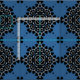 Nahtlos abstraktes Muster mit geometrischen Formen in Blau, Schwarz und Weiß.